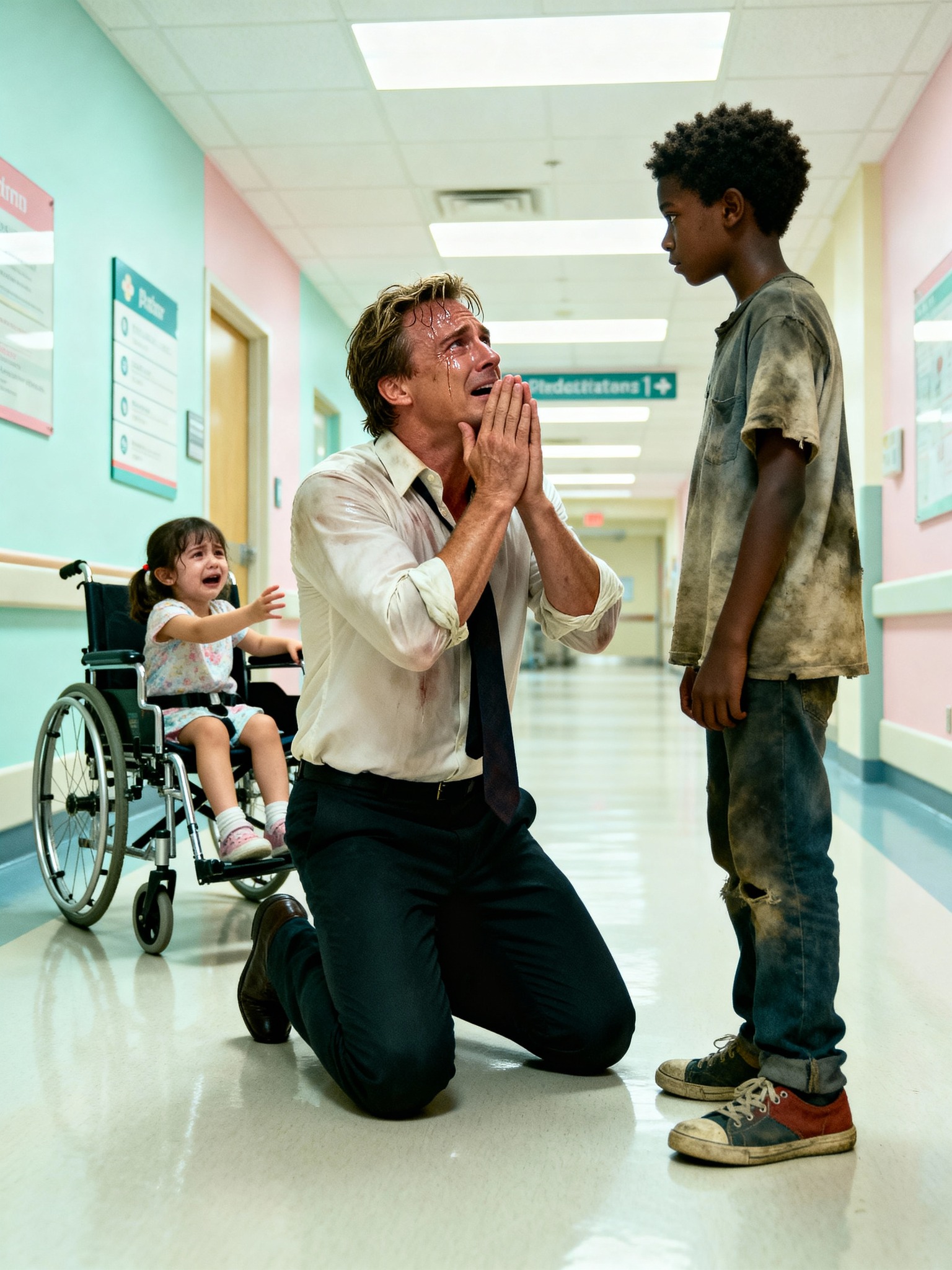Behind one of those doors lay his daughter, Rebecca, only nine years old, her small body bruised and fragile beneath white sheets, her dark hair spread across a pillow that felt far too large for her. The accident had happened so suddenly that Michael still struggled to remember the details clearly. A moment at a crosswalk, a flash of headlights, the sickening sound of metal and glass. Now the doctors spoke in cautious tones about spinal injuries, nerve damage, and long months of rehabilitation, and every sentence ended with uncertainty.